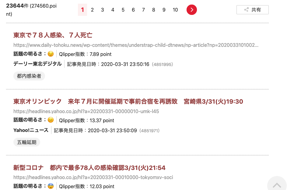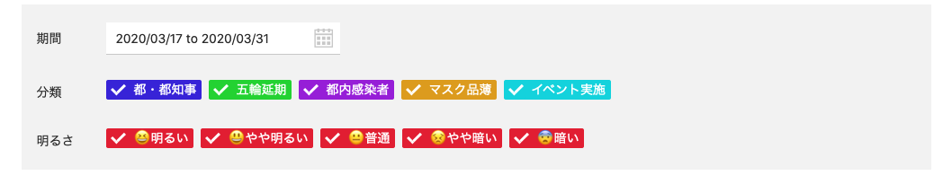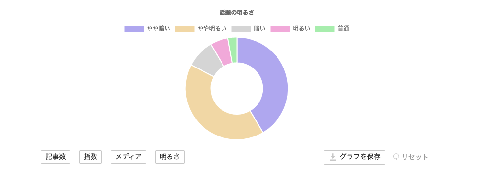 AIが記事の話題を抽出し、感情分析をした結果を話題の明るさとして反映。暗い、やや暗い、普通、やや明るい、明るいの5段階で評価。