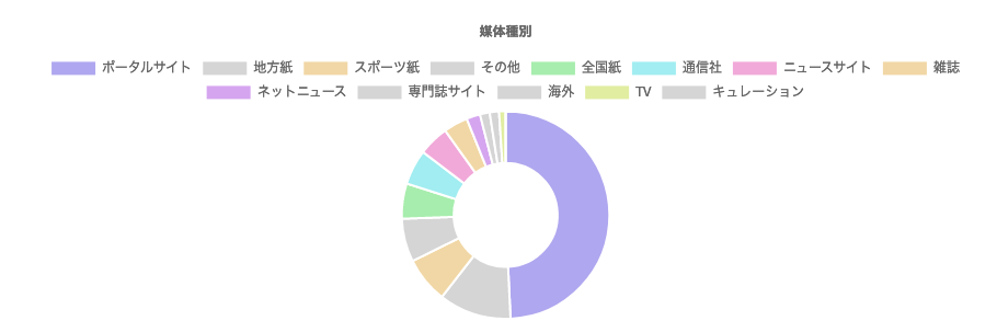 ポータルサイト、全国紙、地方紙など掲載メディアの種類によって分類されて内訳を見ることができます。