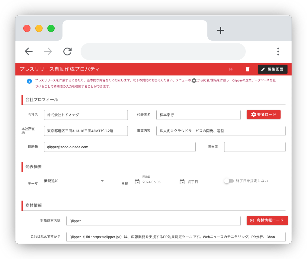 署名や商品情報、アップロードした画像の管理・再利用もできるので、毎回のリリース作成の負担が減ります。