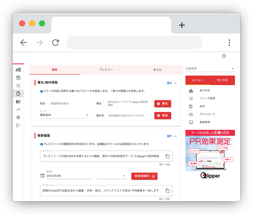 プレスリリースをはじめとしたPR業務をQlipper上で管理します。