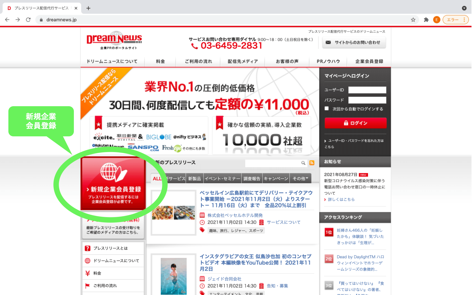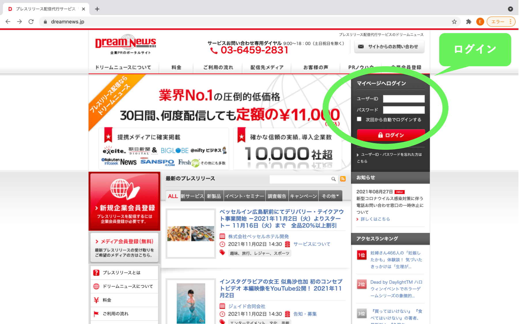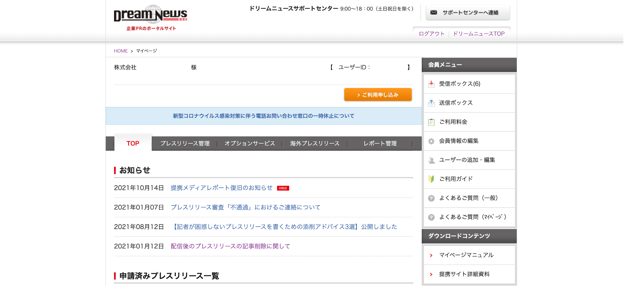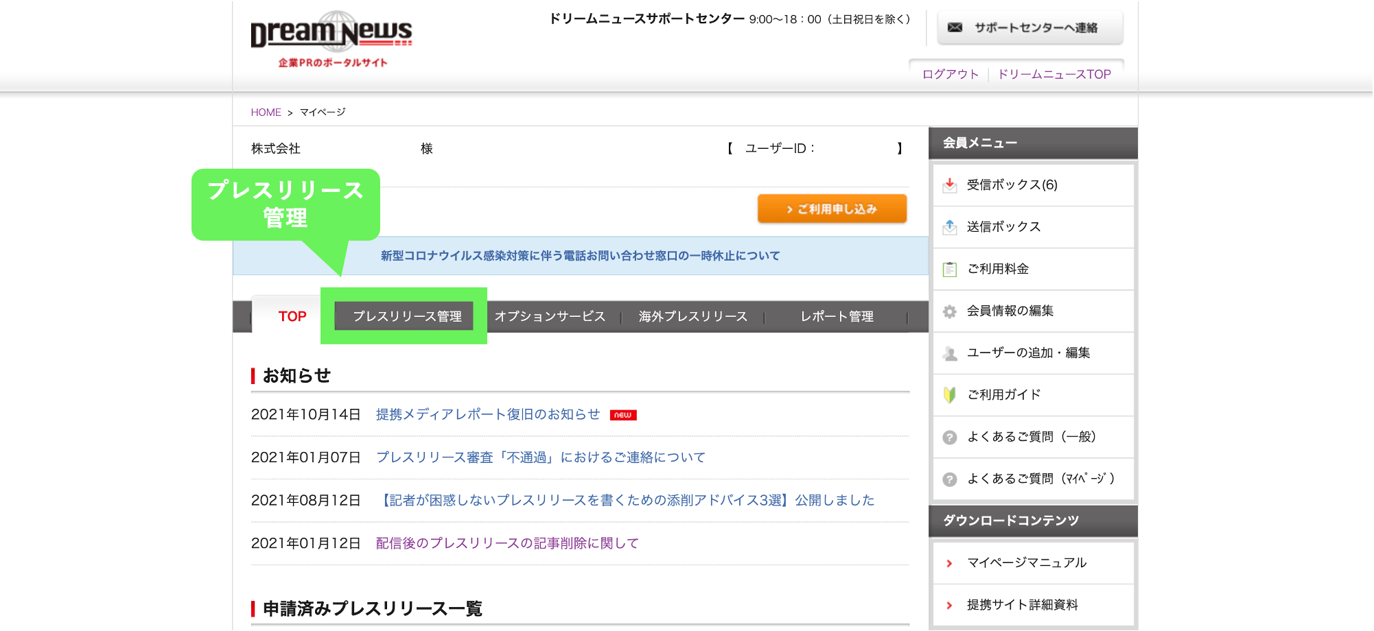 今回はドリームニュースのプレスリリース作成・配信方法です。