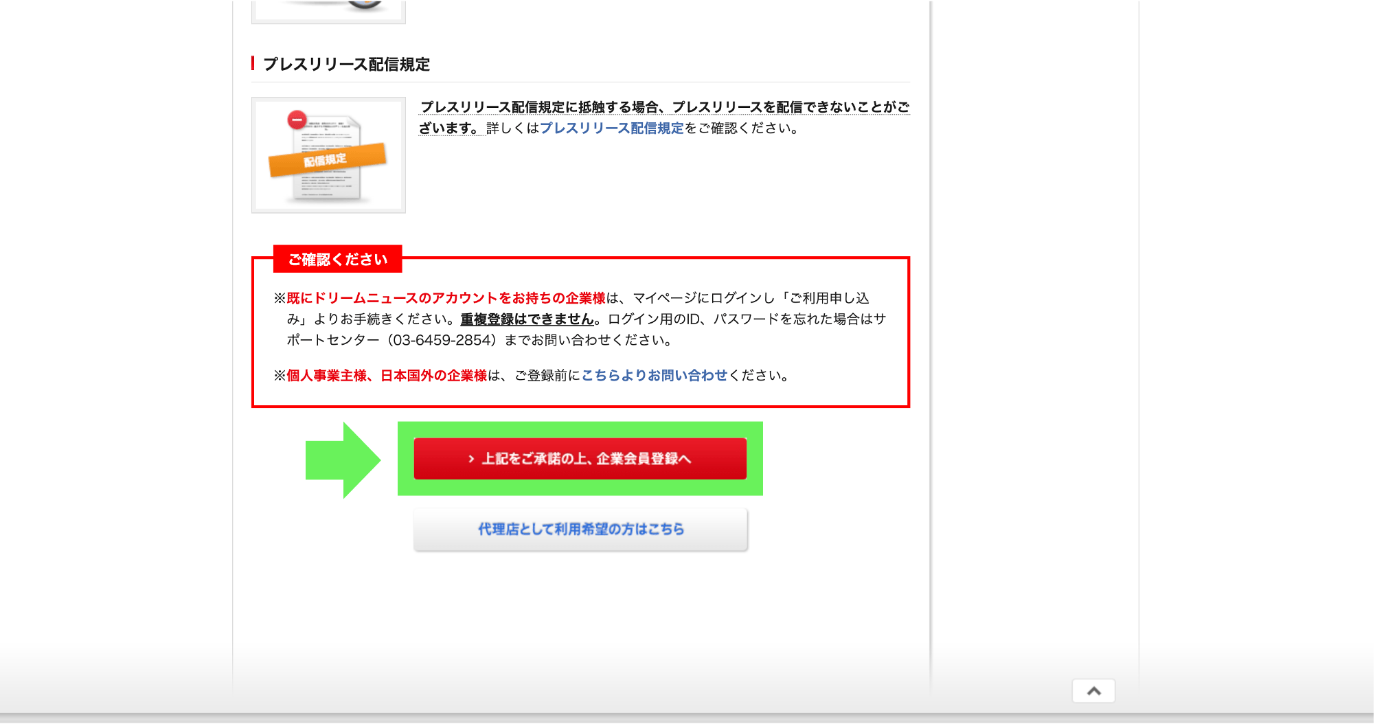 問題がなければページ下部の「上記をご承諾の上、企業会員登録へ」を押します。