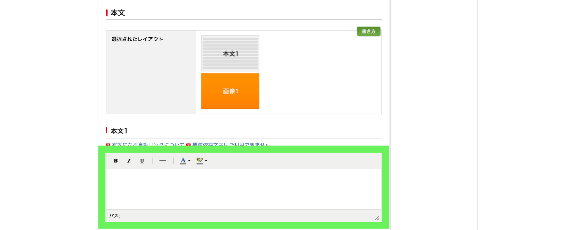 本文と画像の位置がテンプレートになっているので、あらかじめ決めます。