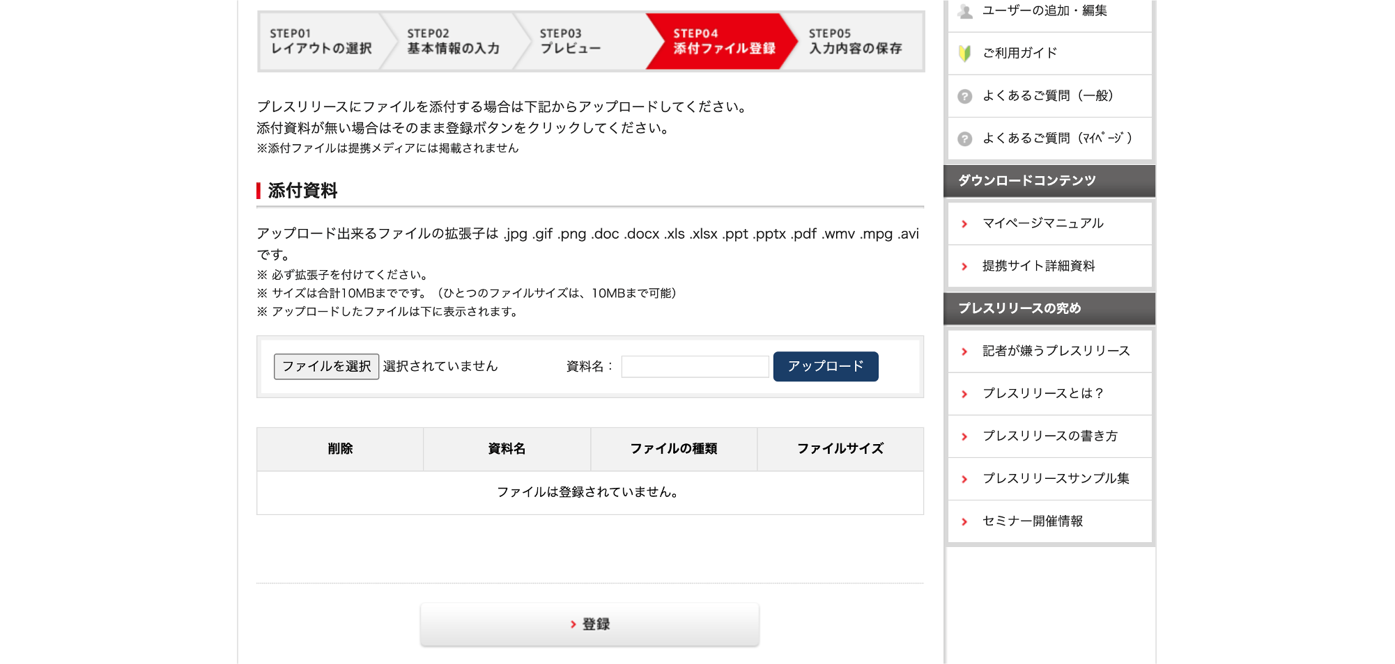「登録」を押すと、作成したプレスリリースが保存されます。