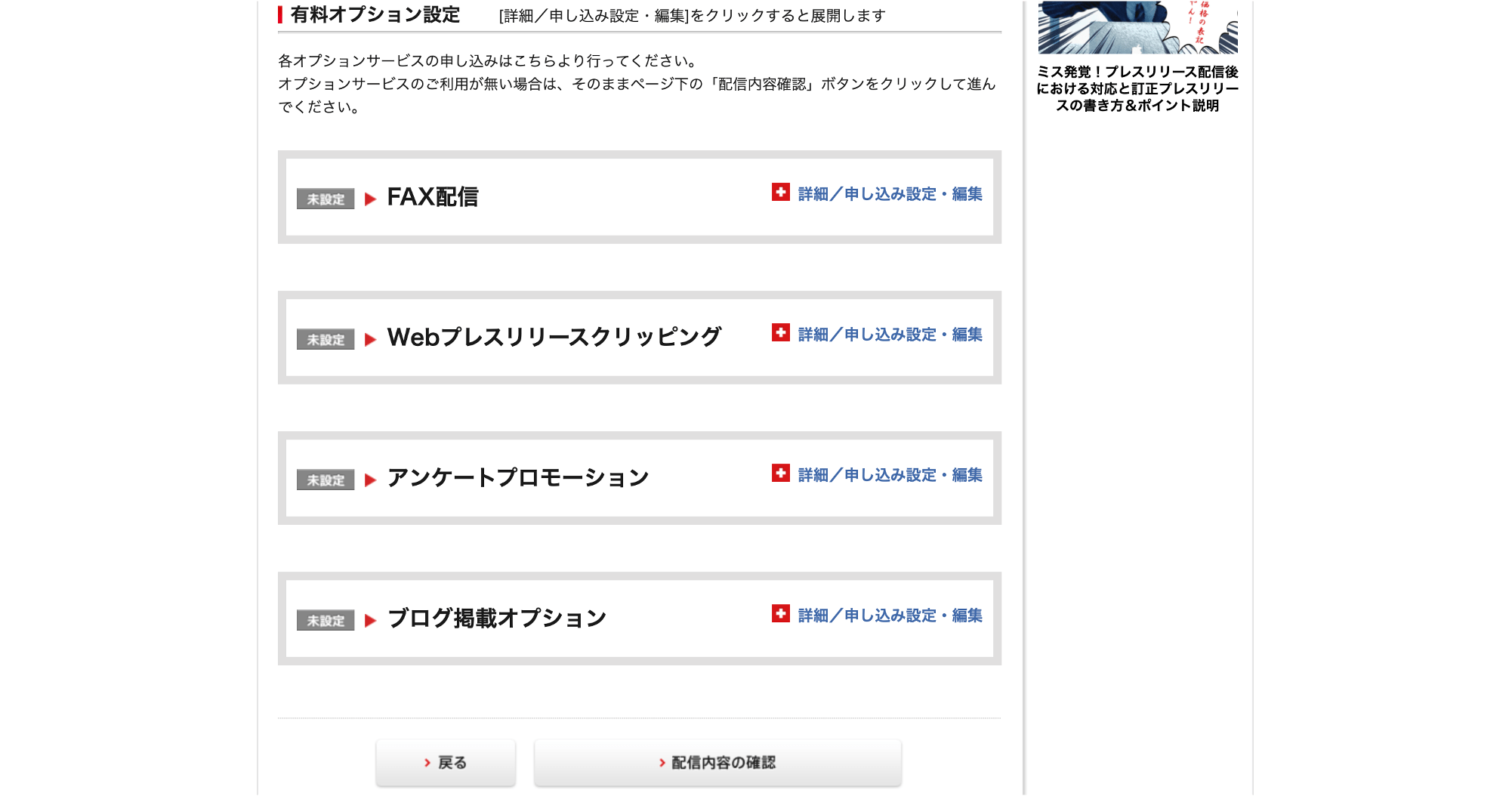 次のページで最後に設定内容とリリース文面の最終確認をし、問題がなければページ下部の「配信申請する」をクリックします。