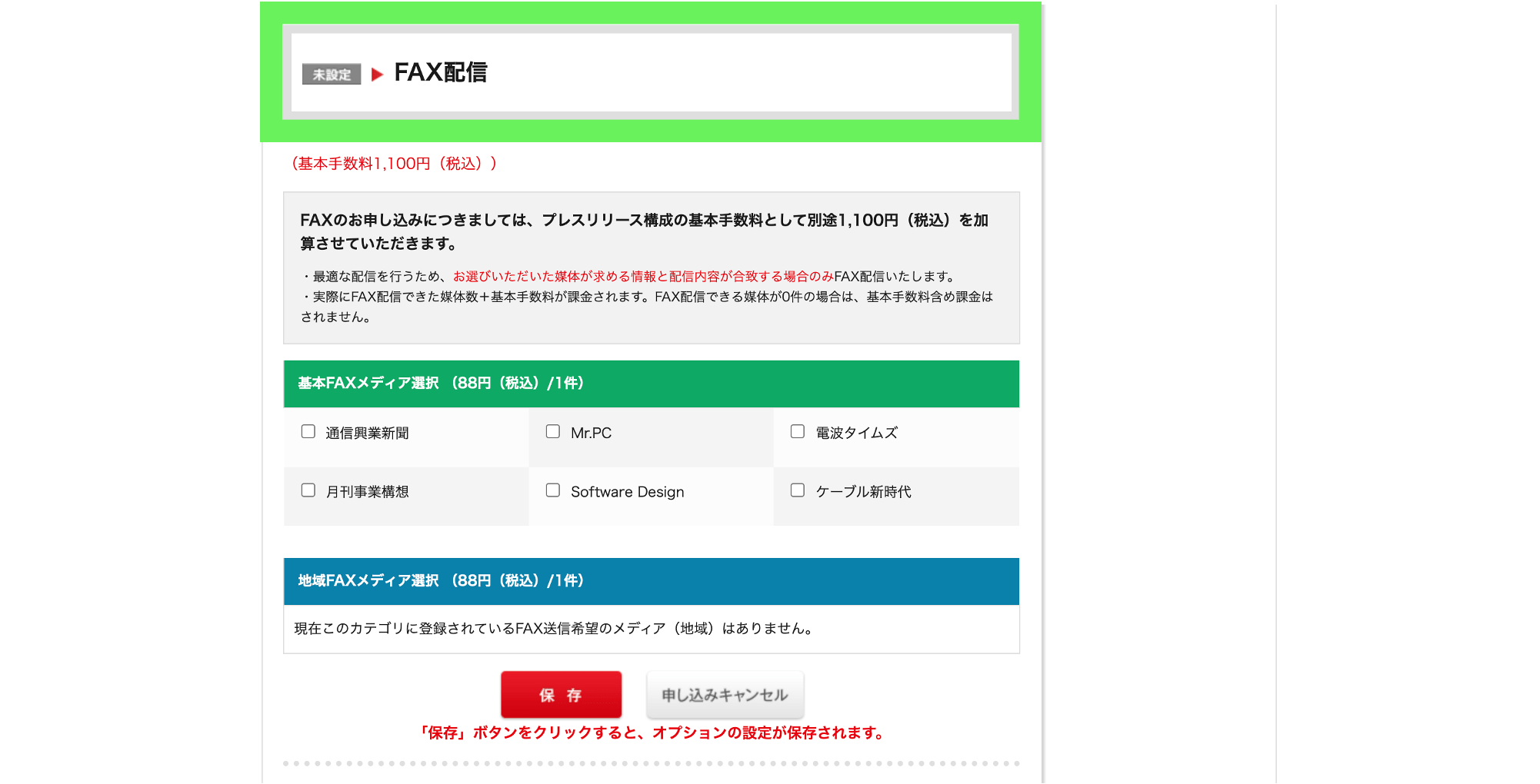 - FAX配信(基本手数料1,100円 + 88円/1件)
