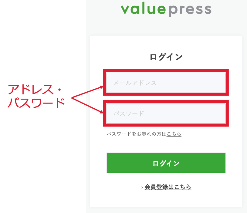 メールアドレスとパスワードを入力し、「ログイン」をクリック。