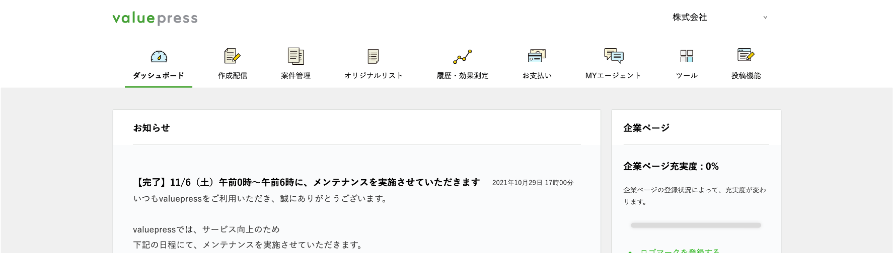 今回はvaluepressのプレスリリース作成・配信方法です。