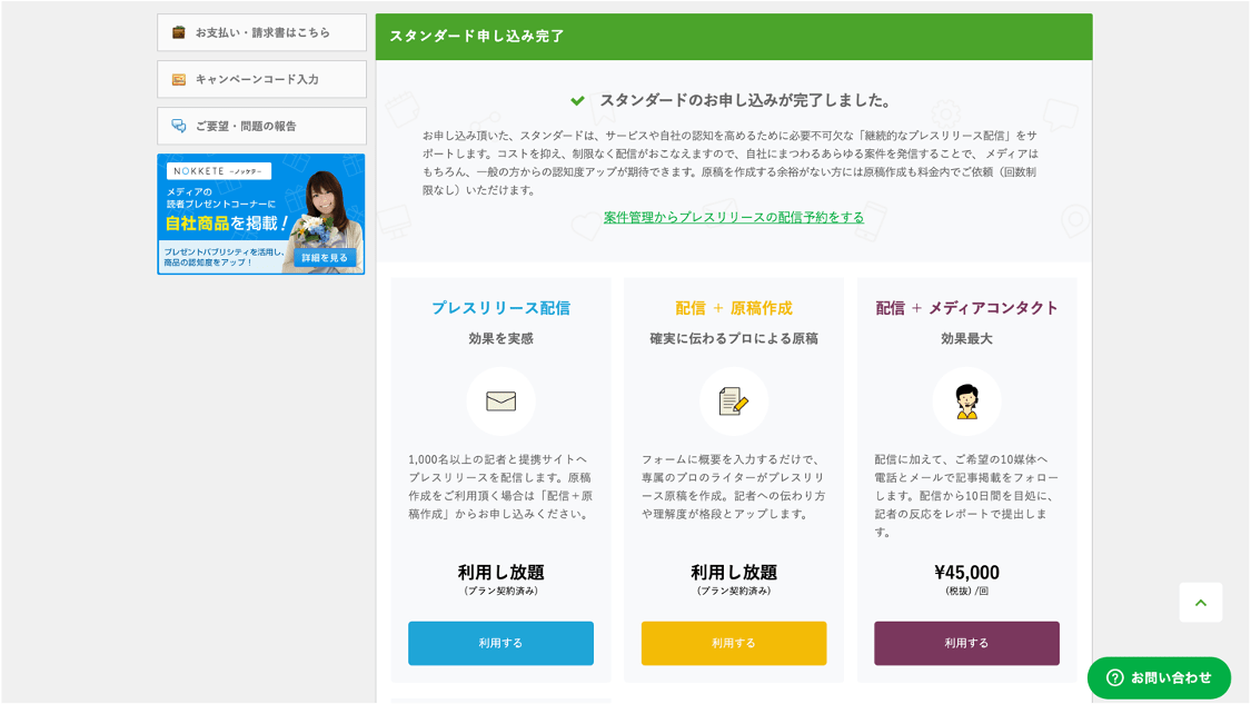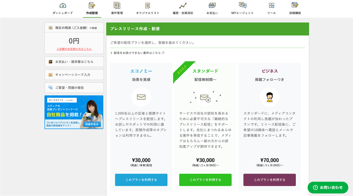 プレスリリースの内容を作成する前に、配信プランを選択します。