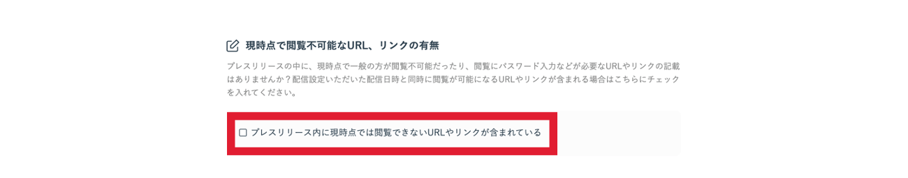 →プレスリリースの中に、その時点では閲覧できなかったり、パスワードが必要だったりするURLがある場合にチェックを入れます。
