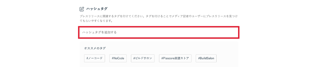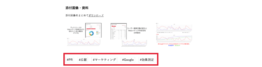 →タグを付けるとプレスリリースの下部に表示され、valuepress内での検索に利用されます。